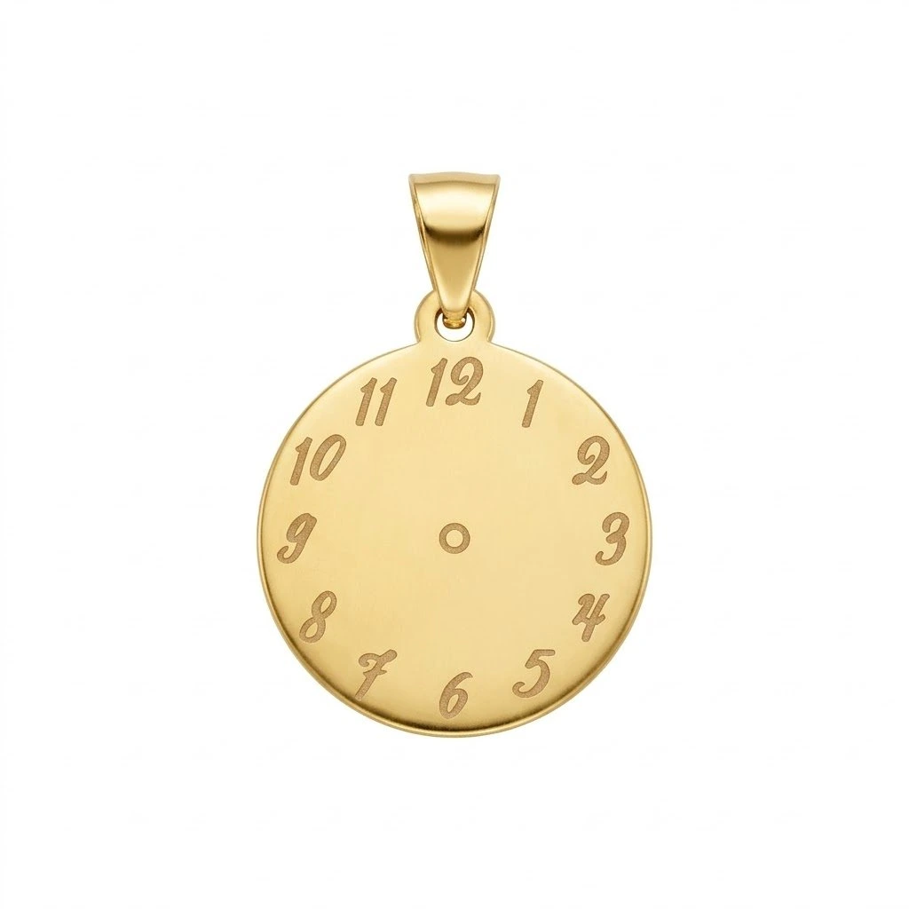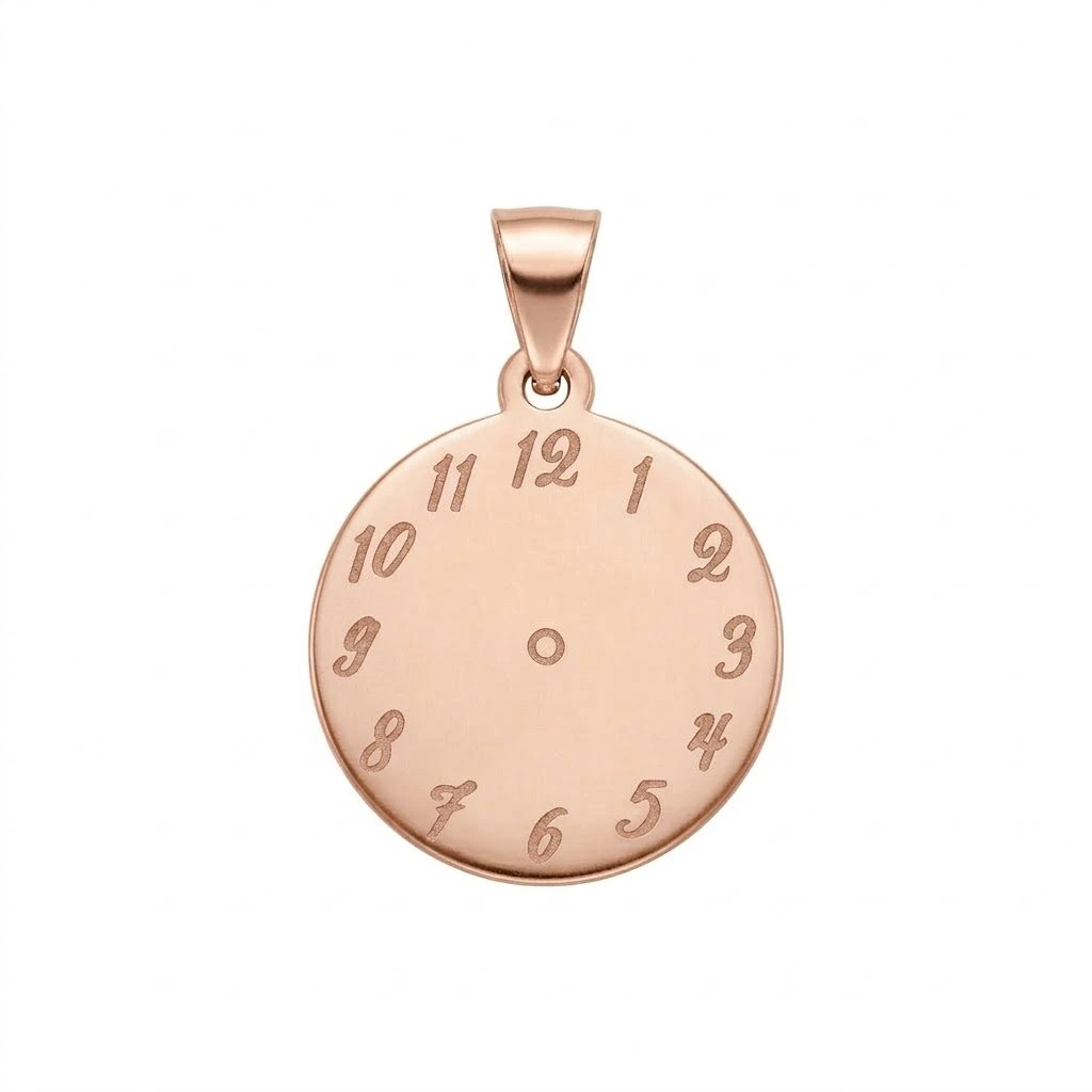 Prívesok v tvare ciferníka, hodinky je možné doplniť presným časom. Prívesok je vhodný aj na gravírovanie na zadnej strane.