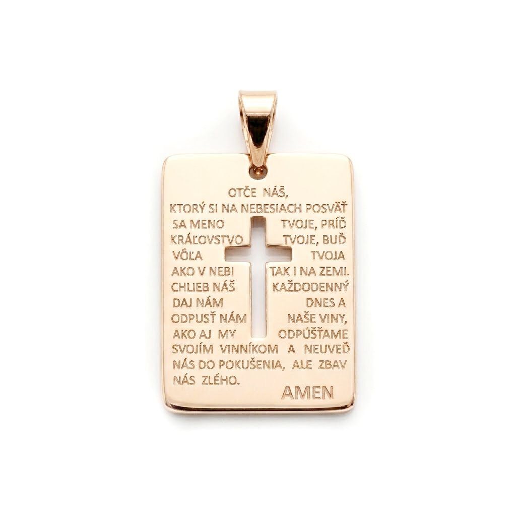 Zlatý obdĺžnikový prívesok s modlitbou Otče náš a výrezom krížika