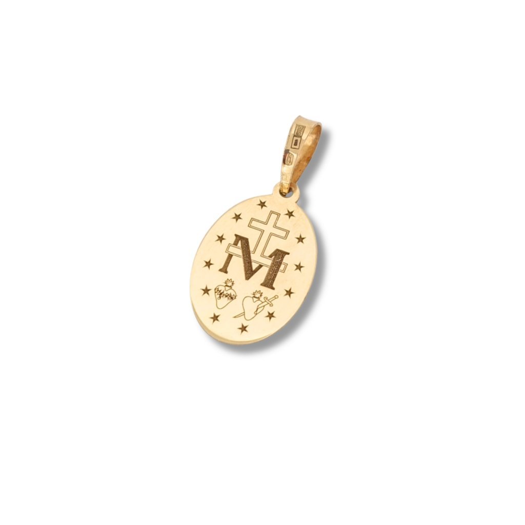 Zlatý oválny prívesok Zázračná medaila v menšej veľkosti. Prívesok s obojstranným gravírovaním.