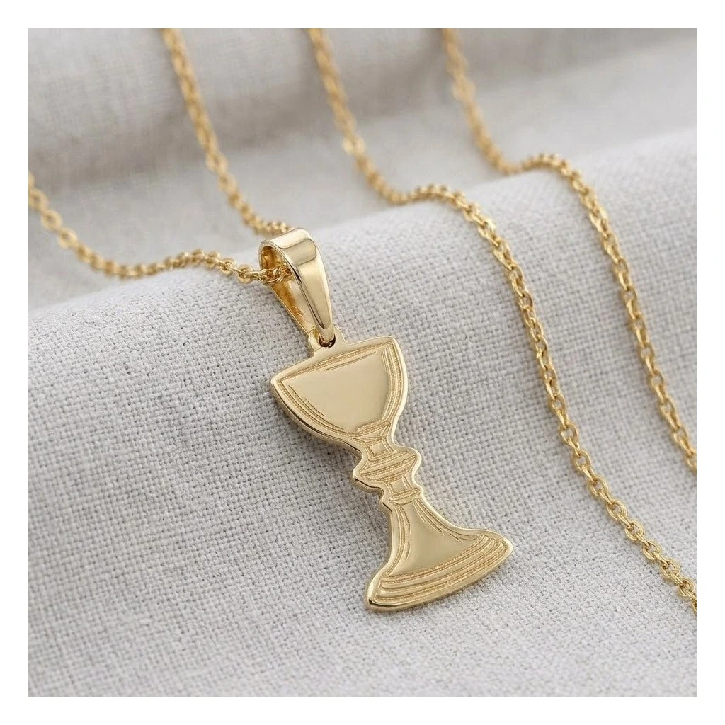 Zlatý prívesok v tvare kalicha s gravírovaním kalicha. Vhodný darček k 1.sv. prijímaniu a birmovke.