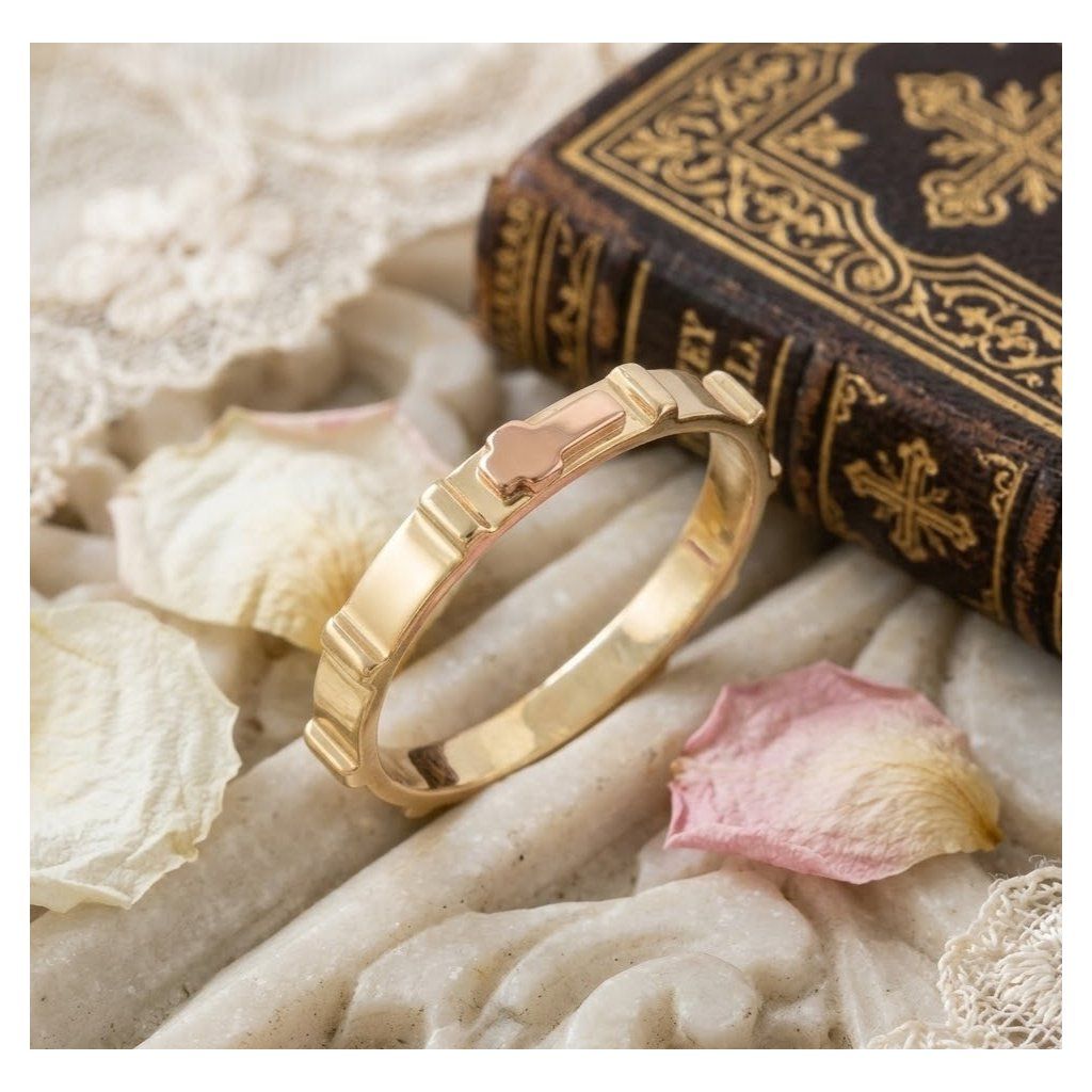 Ruženec tvorí 10 malých zárezov a krížik na vrchu z ružového zlata.